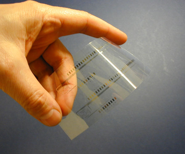 The conducting microelectrode elements, typically about 5um thick and anything down to about 15 um wide, are embedded in a transparent resin layer. This is then transferred onto either a rigid or a flexible carrier surface.